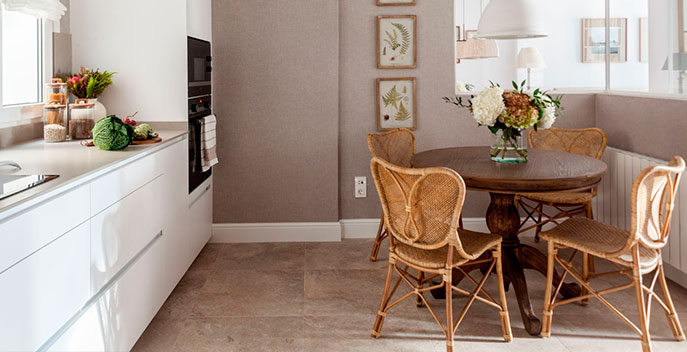 En Santos Getxo nos tomamos enserio la tarea de crear cocinas funcionales adaptadas al estilo de vida de cada famlia. En nuestro útlimo proyecto, creamos una cocina que refleja la simplicidad y elegancia, combinando el minimalismo con toques rústicos para lograr un espacio lleno de armonía y calidez.